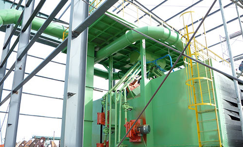 輥道通過式拋丸機安裝現場,客戶是山東東營